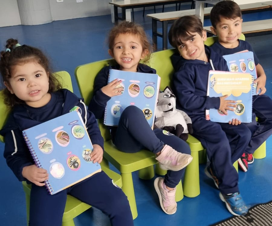 Na aula mais recente a educadora Sheila contou a história dos amigos da personagem Juno, destacando o que cada um gostava ou não gostava. Em seguida, as crianças colaram no livro o adesivo da personagem da história e também compartilharam sobre seus gostos: o que gostam e o que não gostam e como, mesmo com as diferenças, é importante brincar e ser colega de todos.