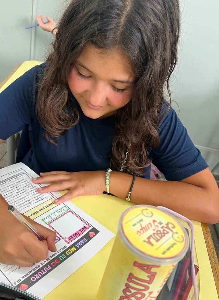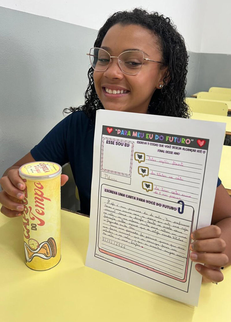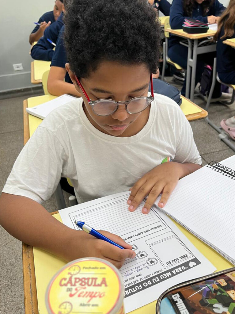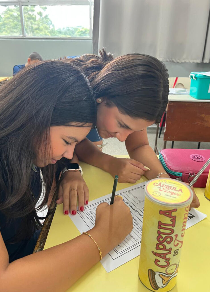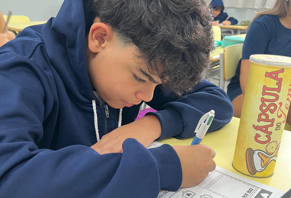 Nesse início de ano, durante as aulas de Português, os alunos participaram da atividade “Cápsula do Tempo”, em que deveriam escrever uma carta para o seu eu do futuro. Estas cartas foram guardadas e serão abertas apenas no final do ano, como forma de resgatar expectativas, reflexões e percepções construídas ao longo do percurso. A proposta foi acompanhada de uma conversa sobre a importância das escolhas que fazemos ao longo da vida.