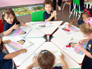 Teacher Letícia Limakindergarten 3 A and C Em um aprendizado contínuo e simultâneo, nos currículos de português e inglês, as crianças estão identificando as cores. Neste momento as turmas do K3 A e C estão