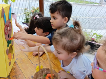 Educadora Vanessa BrandãoKindergarten 3 A A Páscoa já passou, mas as crianças ainda guardam o sabor gostoso desta que é uma data muito especial e cheia de significados. Em uma brincadeira, os alunos utilizaram uma