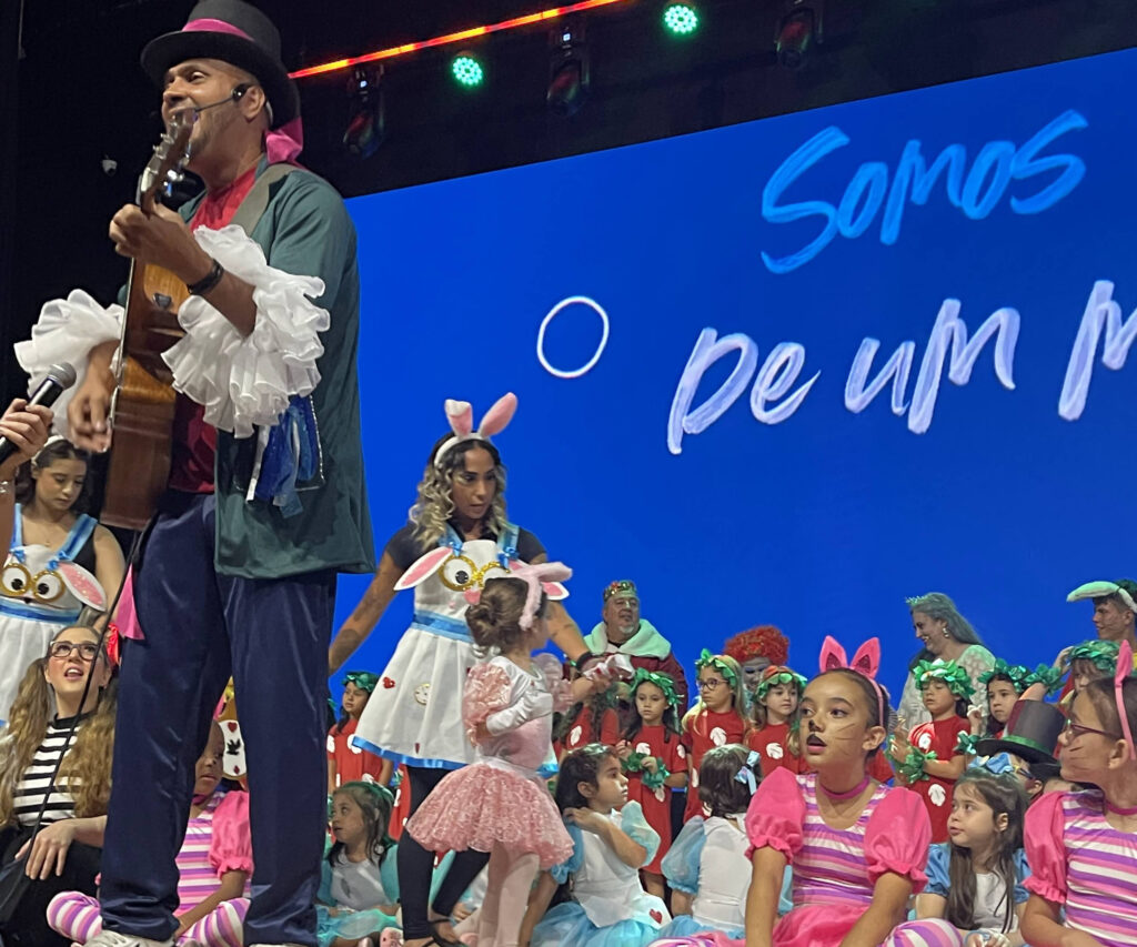 Esta etapa das comemorações contou com a participação das turminhas da Educação Infantil e de profissionais MS, encenando números musicais, dançando e representando personagens à medida que a história, inspirada no tema “Alice no país das maravilhas”, se desenvolvia. “Conexão – fantasia e realidade” trouxe toda a riqueza e ludicidade desta obra que é um clássico da literatura que ainda vive forte no imaginário infantil.