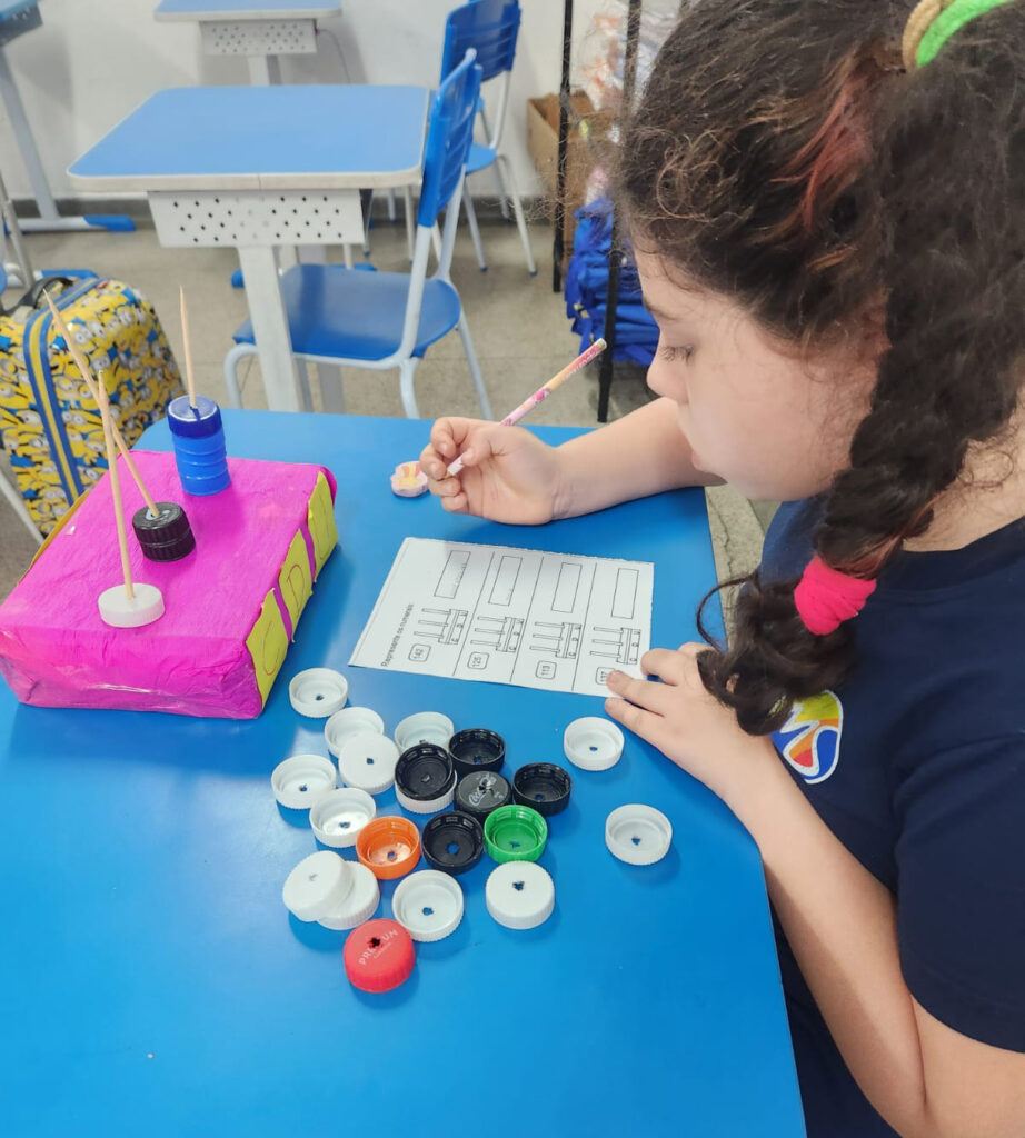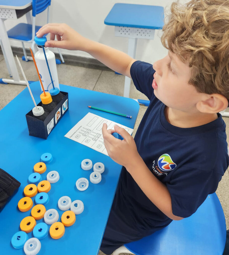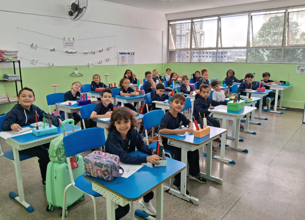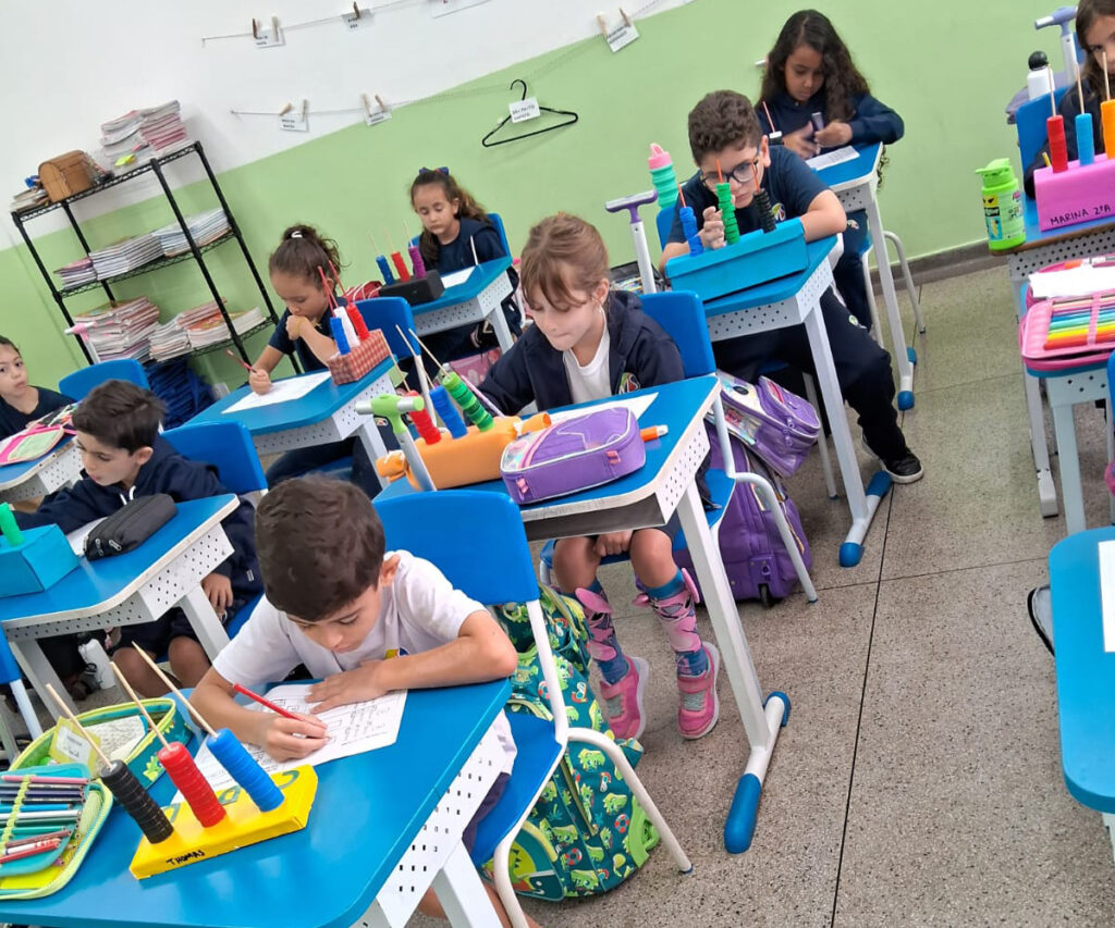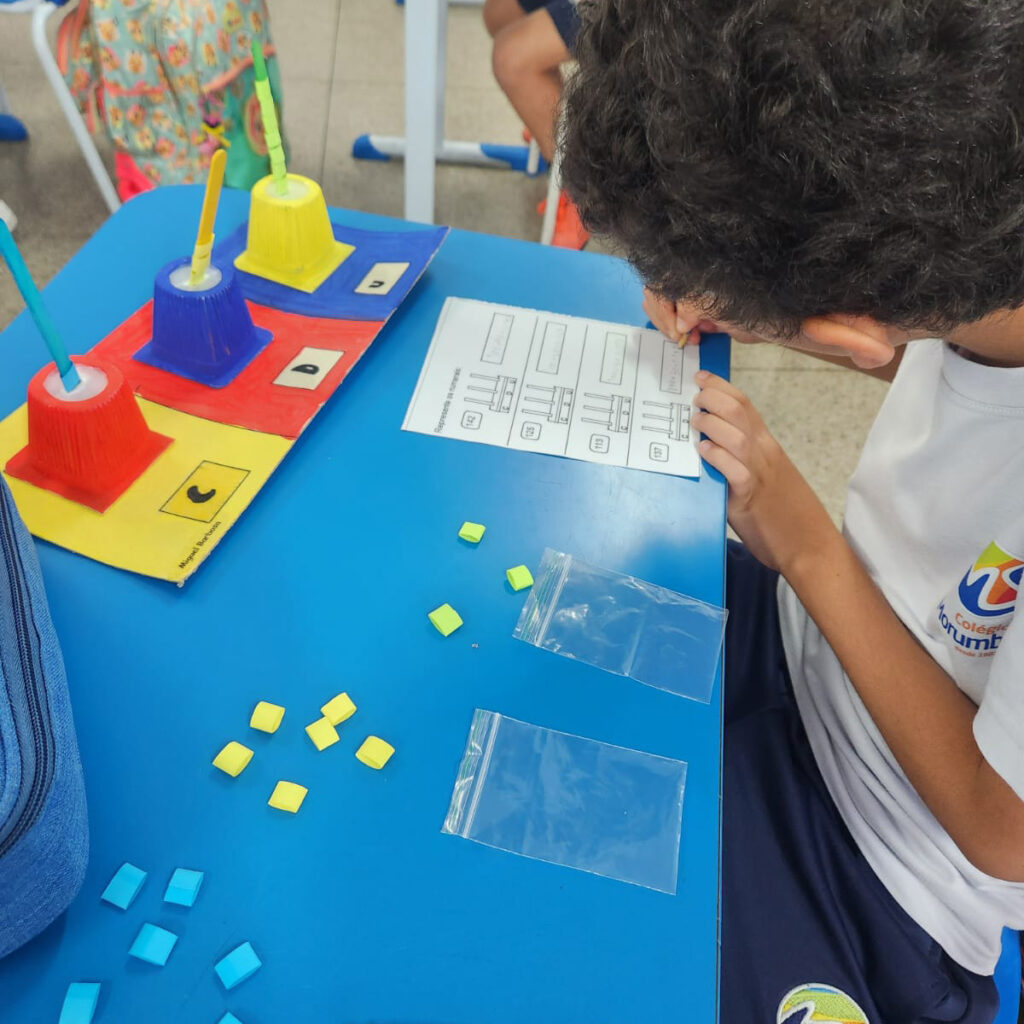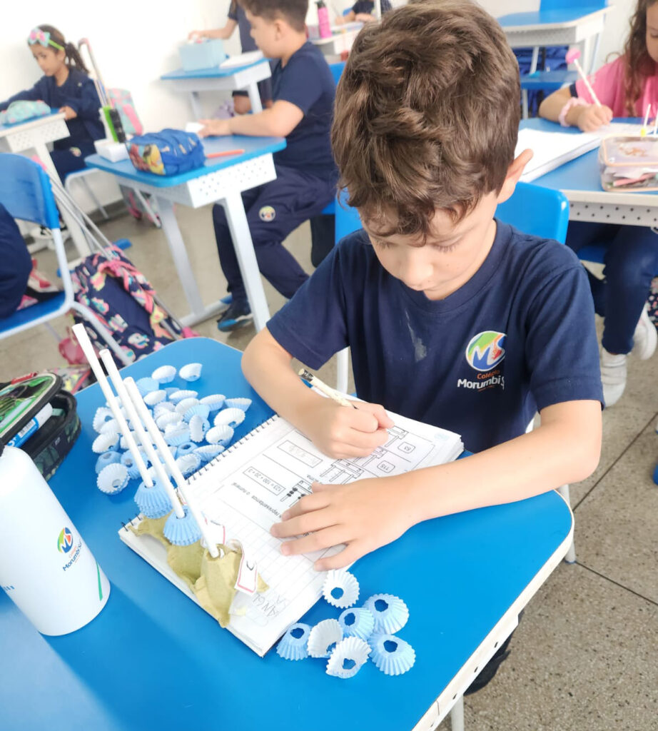 Os estudantes dos 2ºs anos estão avançando no estudo da matemática. Com o ábaco, um instrumento usado para realizar operações aritméticas, como adição, subtração, multiplicação e divisão, eles vão conhecendo o valor posicional dos números, de forma concreta e muito divertida.