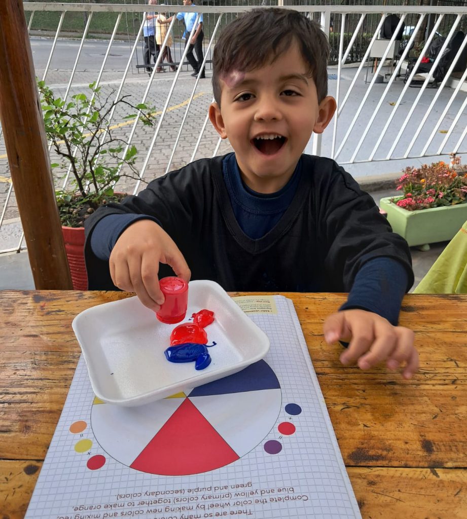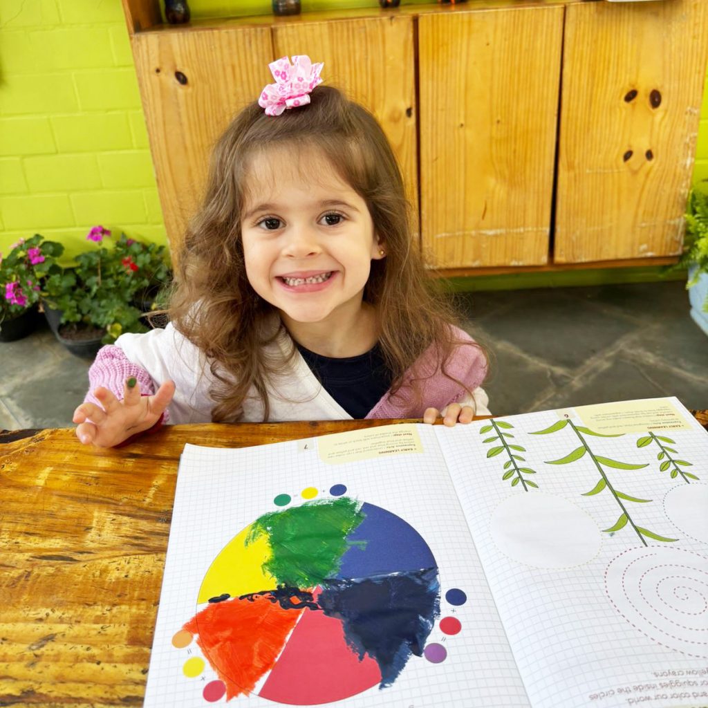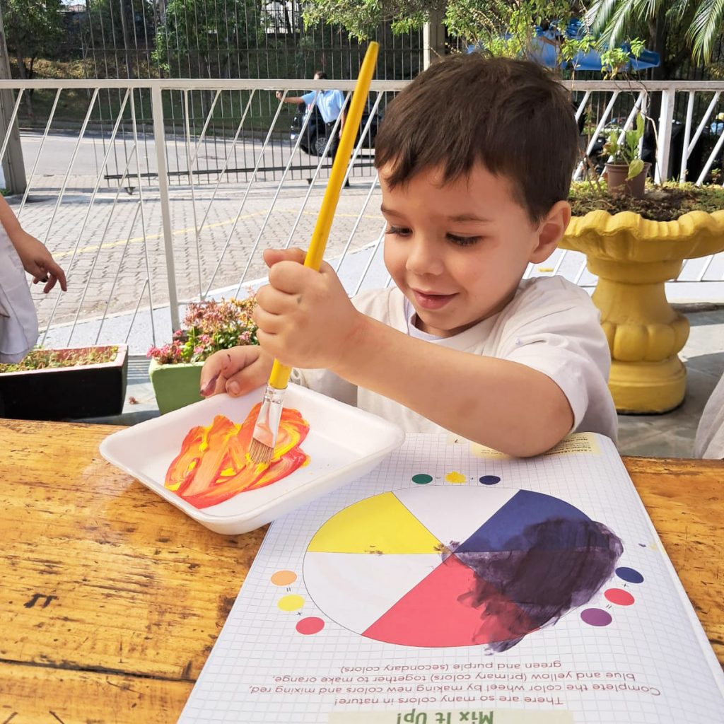 As turminhas do Kindergarten 3 tiveram uma aula superdivertida … e colorida!! Elas aprenderam, fazendo, como novas cores podem ser criadas ao misturar as cores primárias – tudo isso enquanto praticavam, de forma bem espontânea e natural, o vocabulário em inglês.