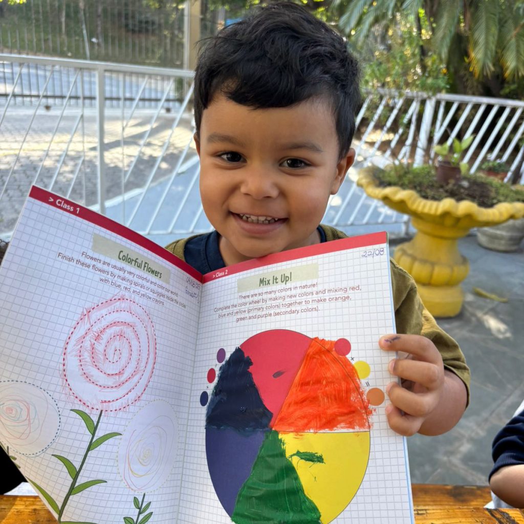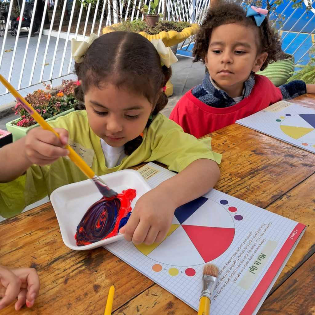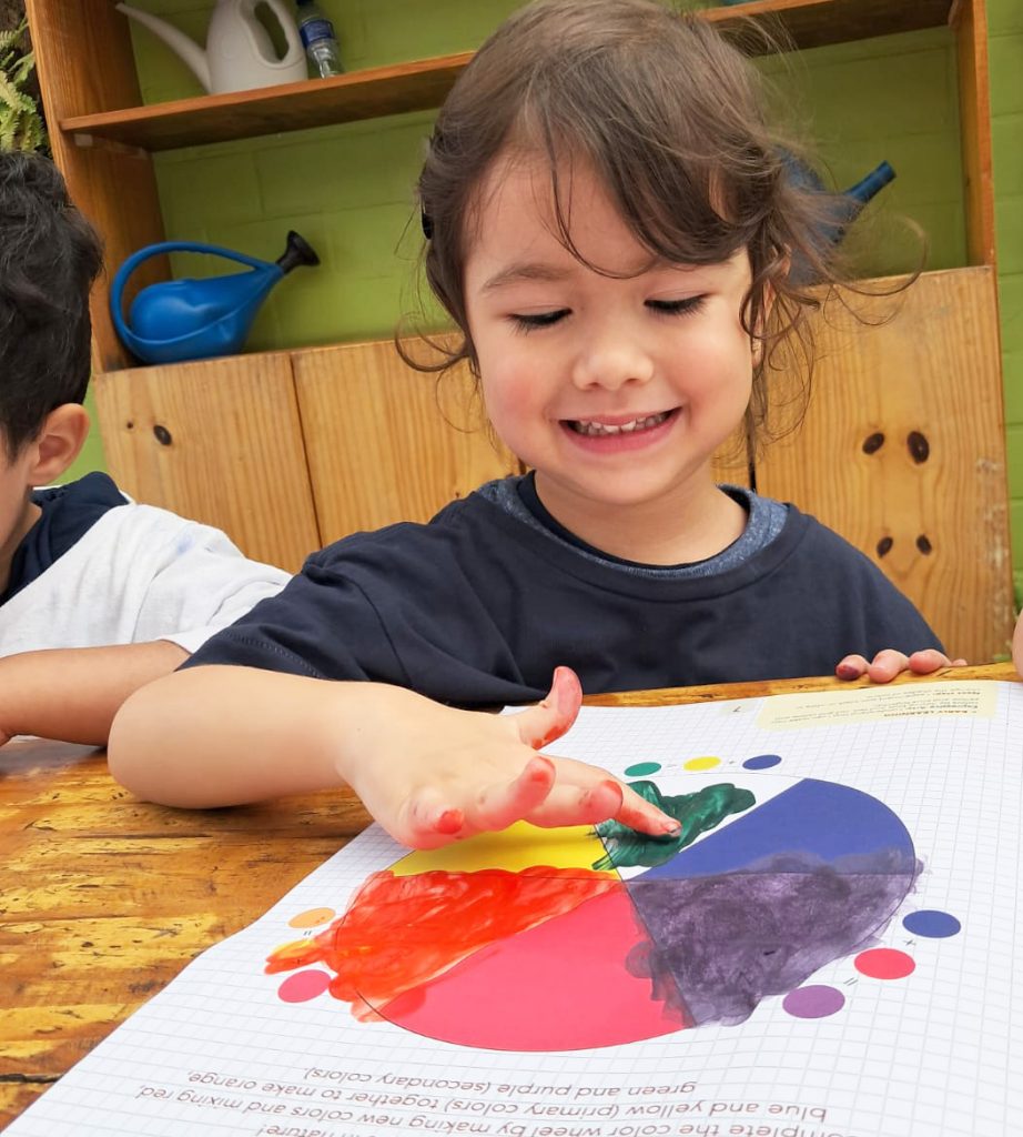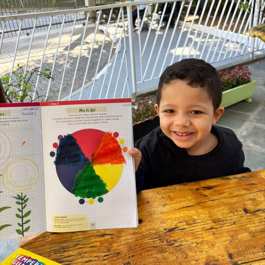 As turminhas do Kindergarten 3 tiveram uma aula superdivertida … e colorida!! Elas aprenderam, fazendo, como novas cores podem ser criadas ao misturar as cores primárias – tudo isso enquanto praticavam, de forma bem espontânea e natural, o vocabulário em inglês.