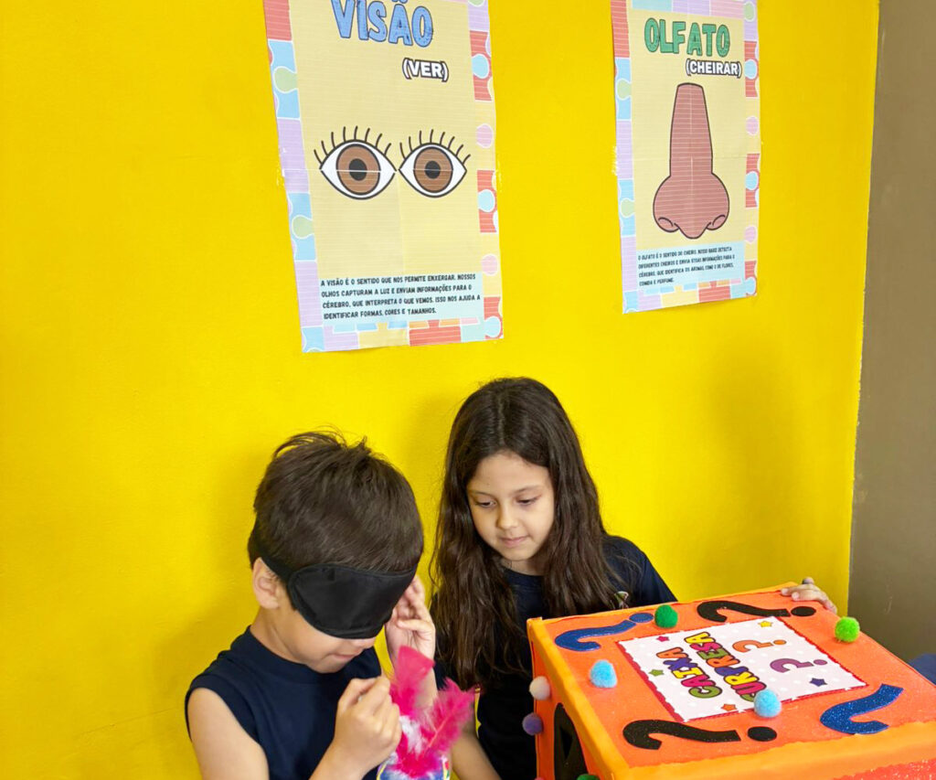 Foram momentos de muita curiosidade e descobertas, em que as crianças puderam explorar, experimentar e entender melhor como cada sentido é importante no nosso dia a dia.