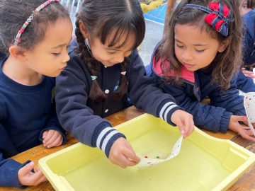 Educadoras Kauana Rodrigues, Cláudia Lucena e Sabrina FlorêncioKindergarten 4 Os estudantes do Kindergarten tiveram aulas bem coloridas esta semana. Eles trabalharam as cores e realizaram experiências variadas usando filtro de papel, canetinha e tinta guache.