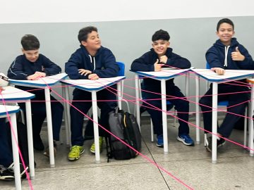 Eni Takeuchi6ºs anos EFAF Com a “caixa de emoções” em mãos, nesta dinâmica de acolhida na volta às aulas, a educadora Eni apresentou diversas situações para interação dos alunos. Divididos em grupos, a cada novo