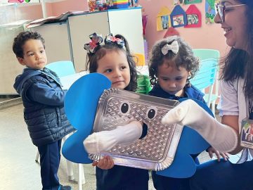 No Colégio Morumbi Sul os pequenos investigadores do B2 (Berçário MS) tiveram a oportunidade de explorar diversos ambientes e diferentes cores usando uma lupa confeccionada por eles com material reciclável e papel celofane. Esta atividade
