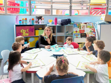 Kindergarten 2Teacher Lia Lamarca As crianças do K2 iniciaram as atividades com o novo livro do currículo de inglês, “Mini Creators”. Todas ficaram muito interessadas com a história da rainforest, que pintaram de green. Também
