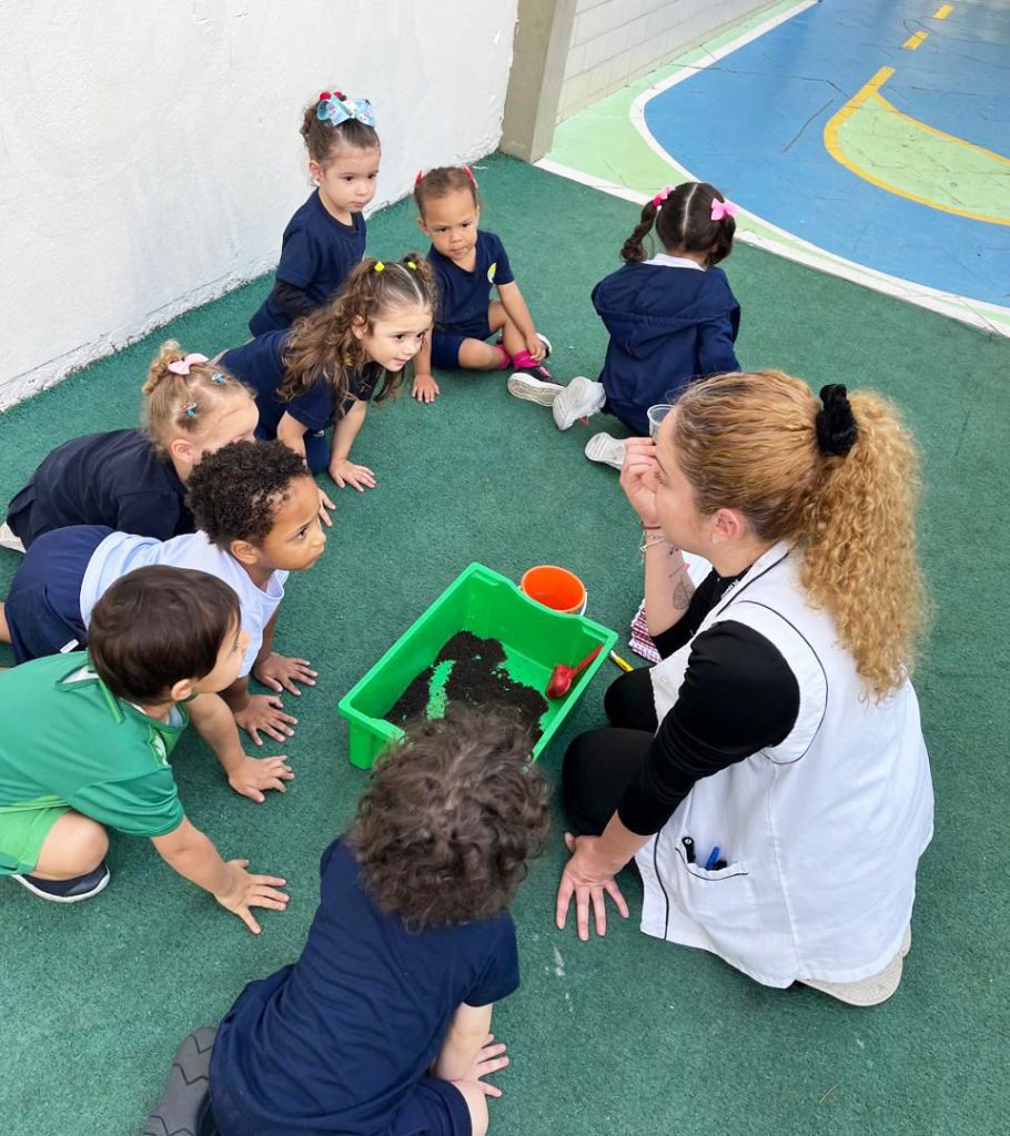 As aulas do K2 se transforam em uma grande aventura, pois as turmas estão aprendendo sobre animais e, neste caso, sobre os elefantes. Para começar, todos cantaram e dançaram ao som da música “Tudo é Grande no Elefante”. Depois, as educadoras pediram aos estudantes que pensassem em um mundo imaginário, onde encontrariam um animal gigante, com boca, dentes e orelhas enormes… mas com um rabinho bem pequeno!