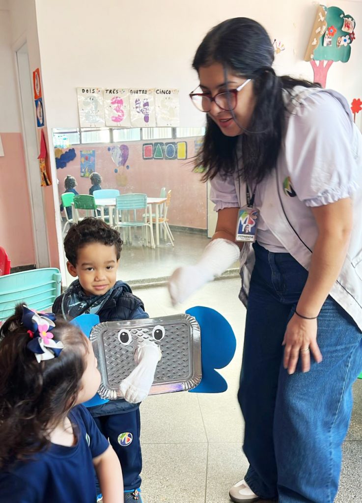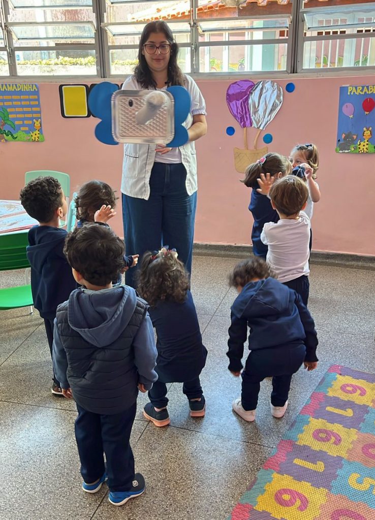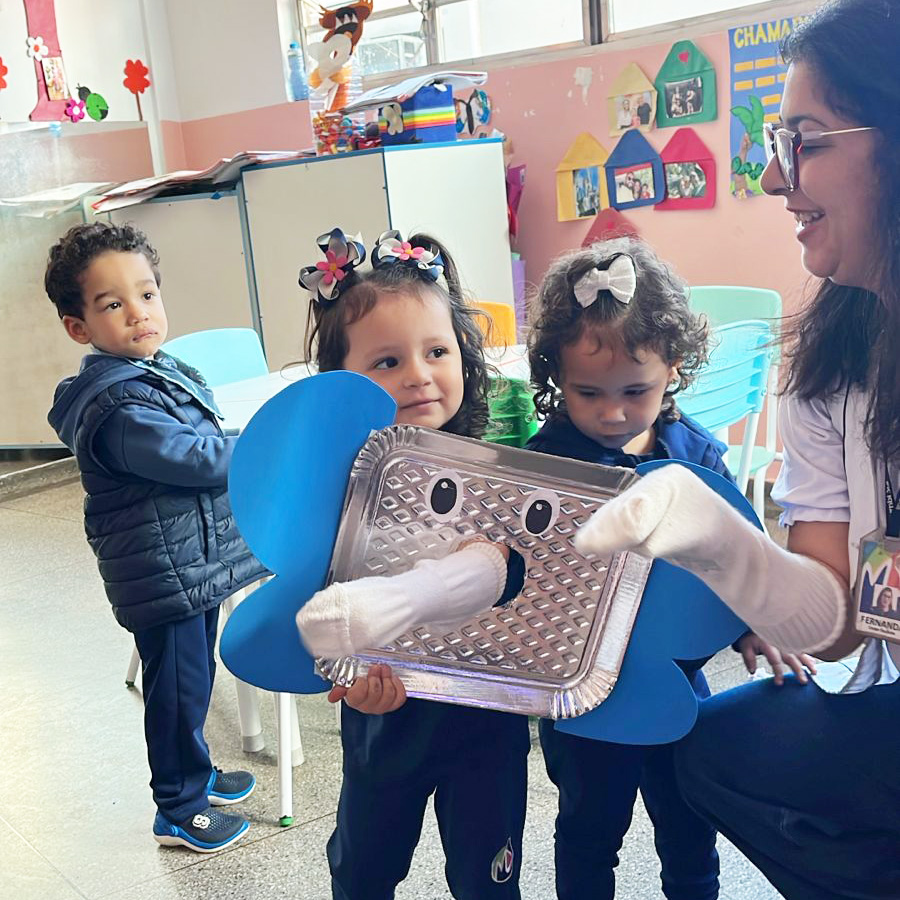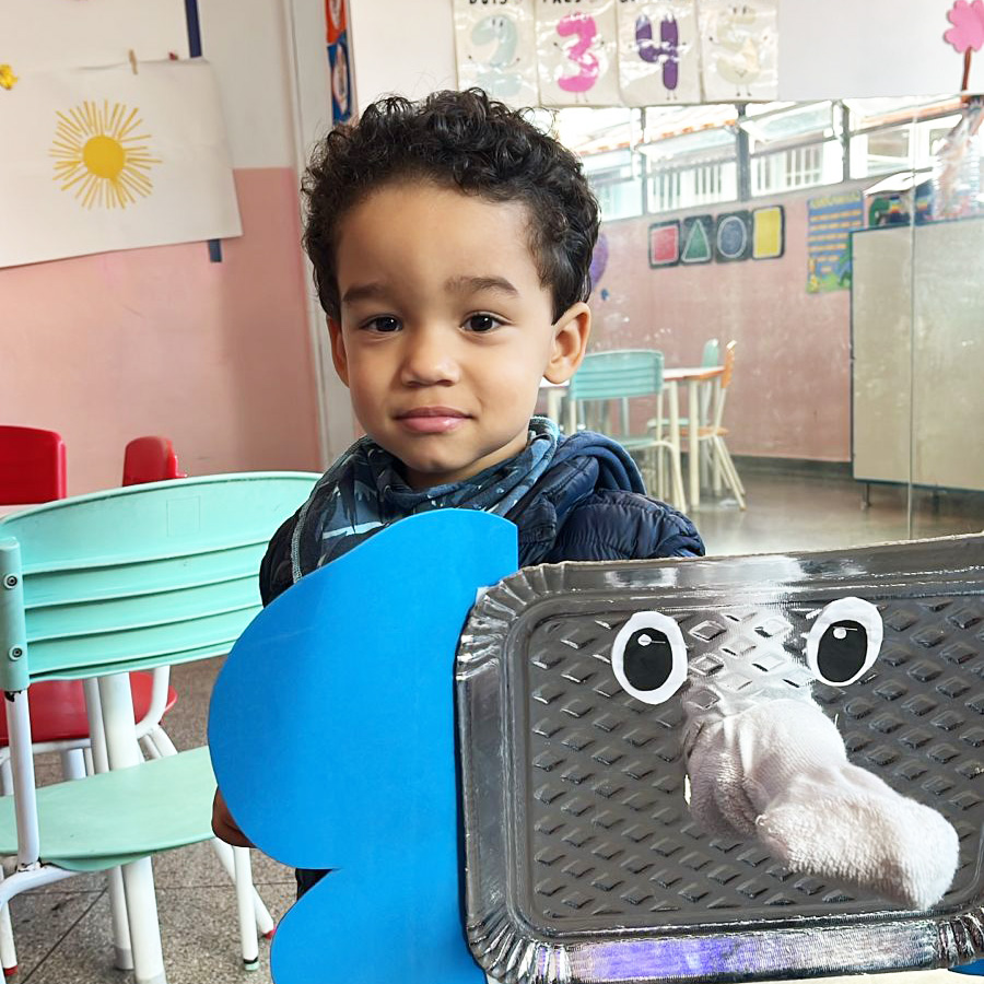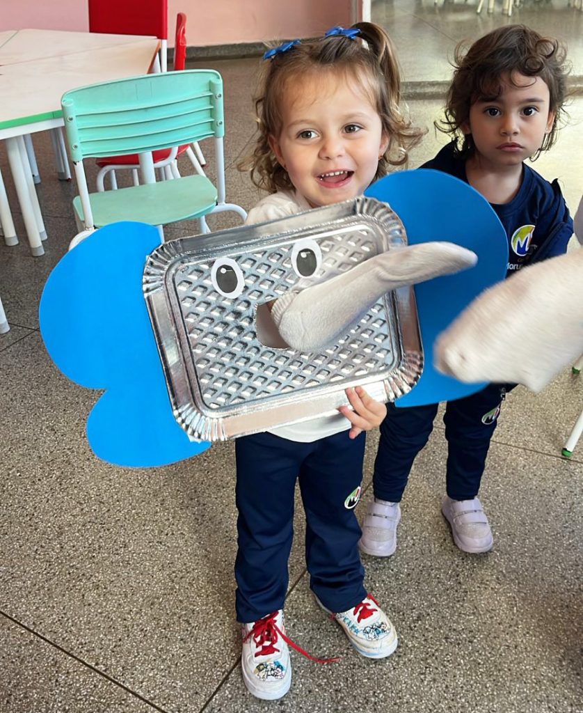 Os alunos do K2C vivenciaram uma gostosa brincadeira utilizando a música “Um elefante incomoda muita gente!”. Além de trabalhar a coordenação movimentando a “tromba” do elefante, os alunos exploraram a matemática a partir da contagem dos elefantes na música.