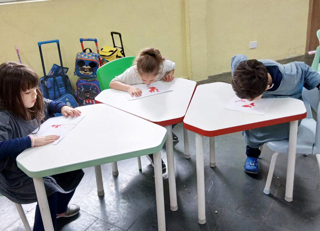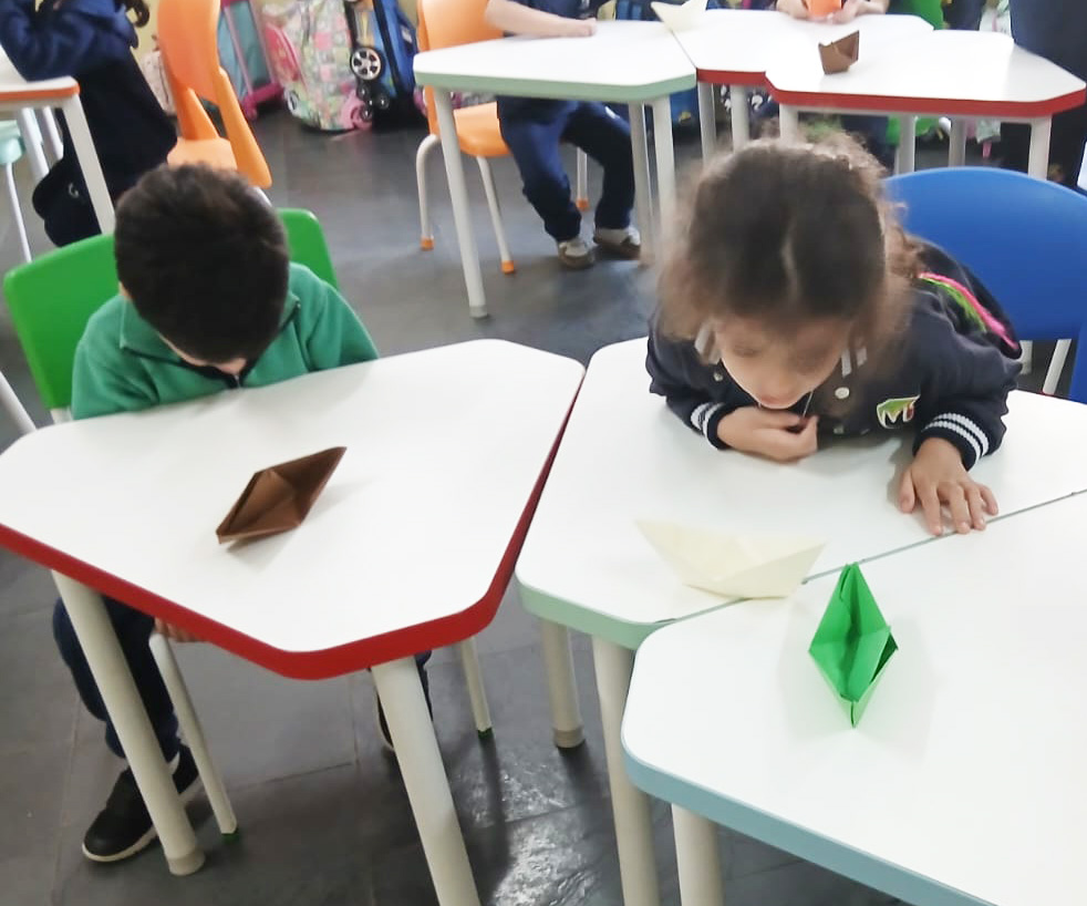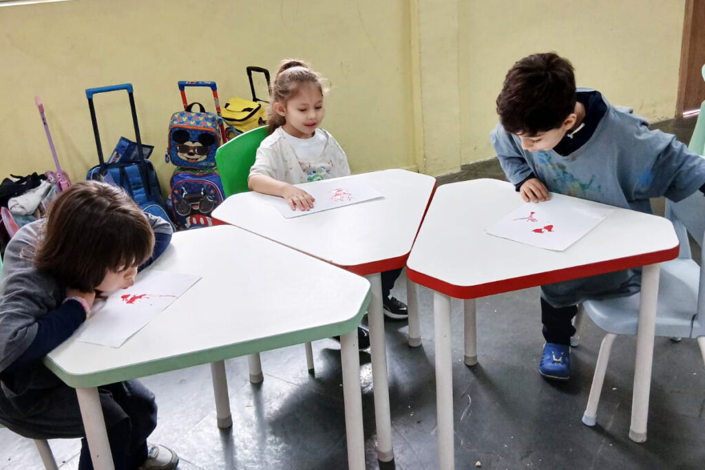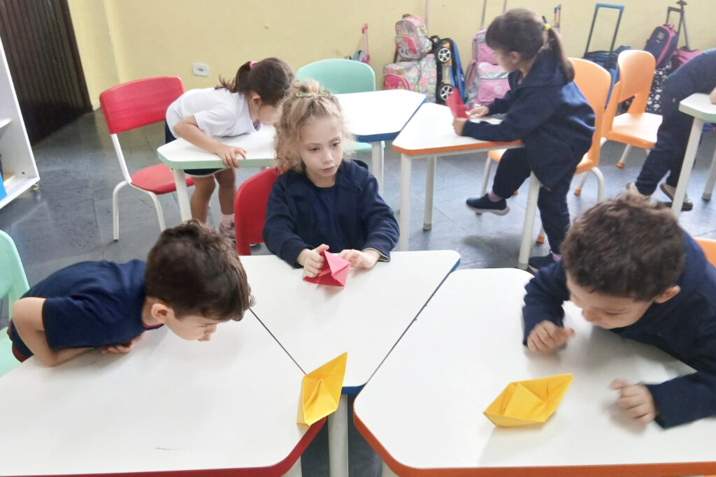 Pensando nisso, todos se divertiram bastante brincando com bexigas e barquinhos de papel, além de fazer “pintura assoprada” e aviões de papel.