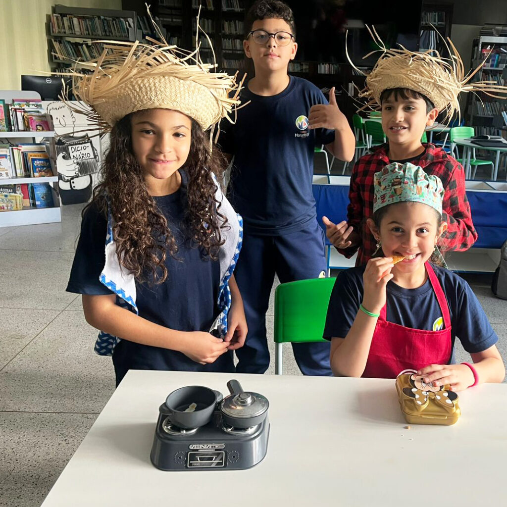 Neste módulo, os alunos do 4º ano A estudaram a peça “Viravez, o cortês” e conheceram um pouco sobre a bondade da personagem principal, o camponês que dá nome à obra e ajudou um saci com a recompensa de fartura infinita.